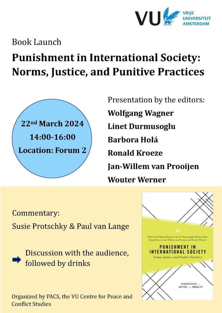 Linet Durmusoglu, Jan-Willem van Prooijen and I examined citizens’ responses to second- and institutional third-party punishment in international and interpersonal relations in two experimental studies. We find that citizens consider the delegation of punishment to a third party more legitimate than second-party punishment not only in the context of the nation-state but also internationally. Even so, the difference in support between second- and third-party punishment is more pronounced at the individual level than at the international level. Confidence in punitive institutions appears to be an important factor in citizens’ support for punishment across settings. The results are published in the edited volume below.